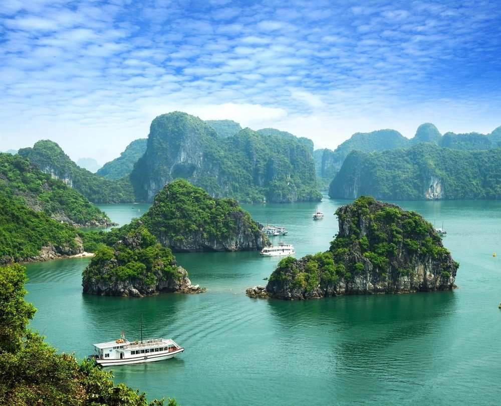 Закуска. В 8:00 ч. отпътуване за залива Халонг, включен в Списъка за световно културно и природно наследство заради изключителната красота на океана. Разходка с туристически кораб около многобройните островчета и пещери. Обяд с морски дарове на борда на кораба. Екскурзия до пещерите Тхиен Чунг или Даи Го (Пещерата на дървените стълбове) – едни от най-красивите в залива. Връщане в Ханой. Нощувка.